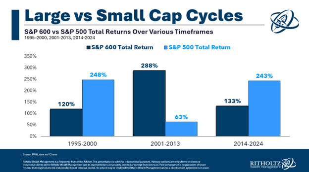 Since 2014, large-cap stocks have outperformed small-caps by 110%.