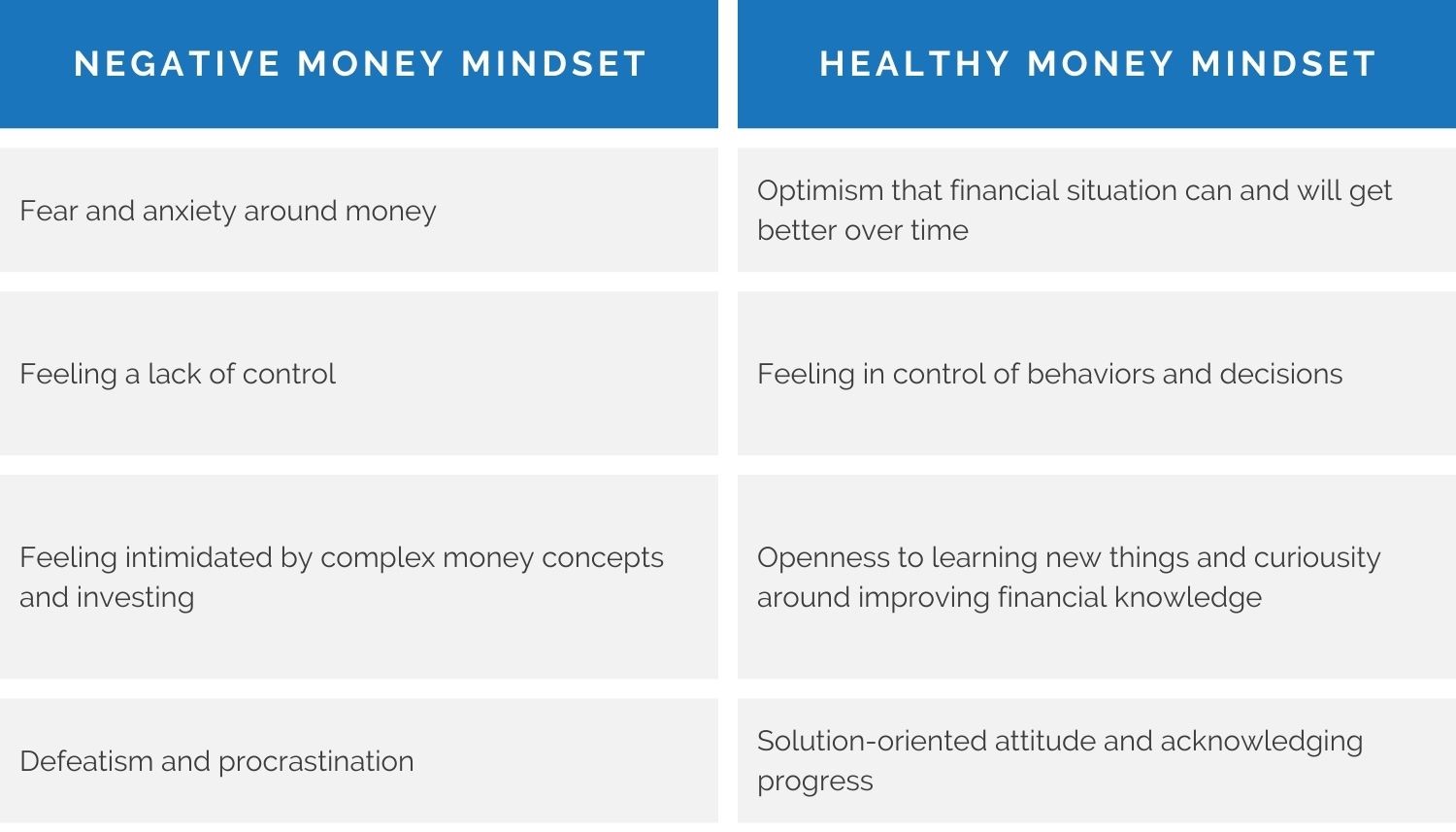 You can go through an exercise of uncovering your money mindset on your own, with a spouse or close friend, or even your financial advisor.